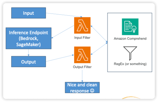 - Model inference – Apply a guardrail to submitted prompts and generated responses when running inference on a model.