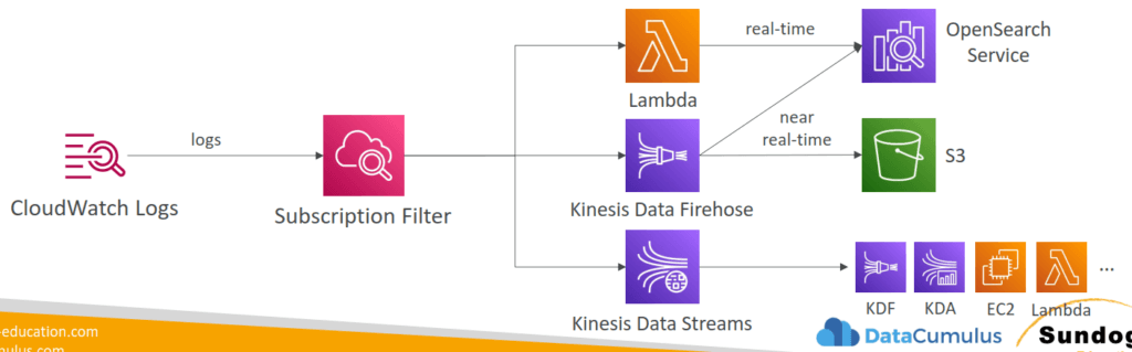 - Get a real-time log events from CloudWatch Logs for processing and analysis